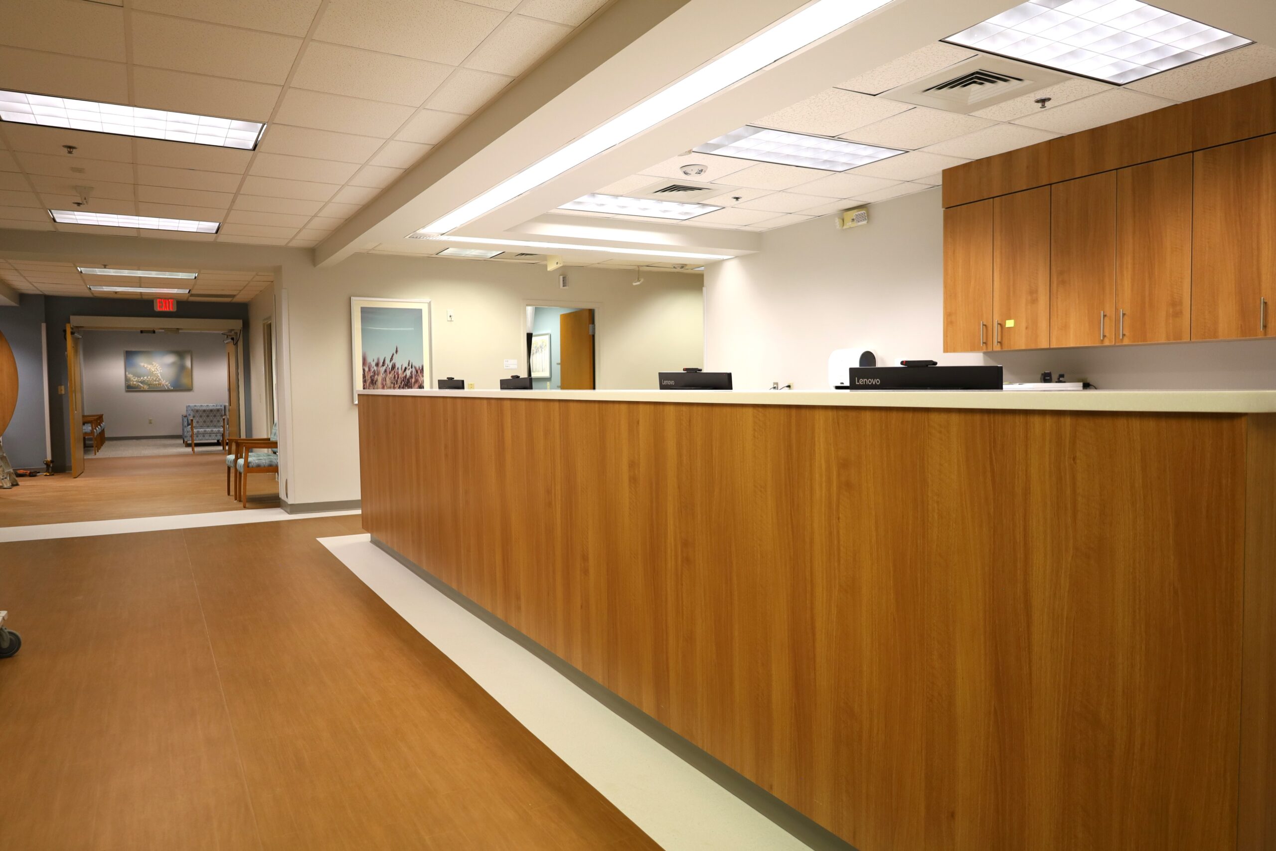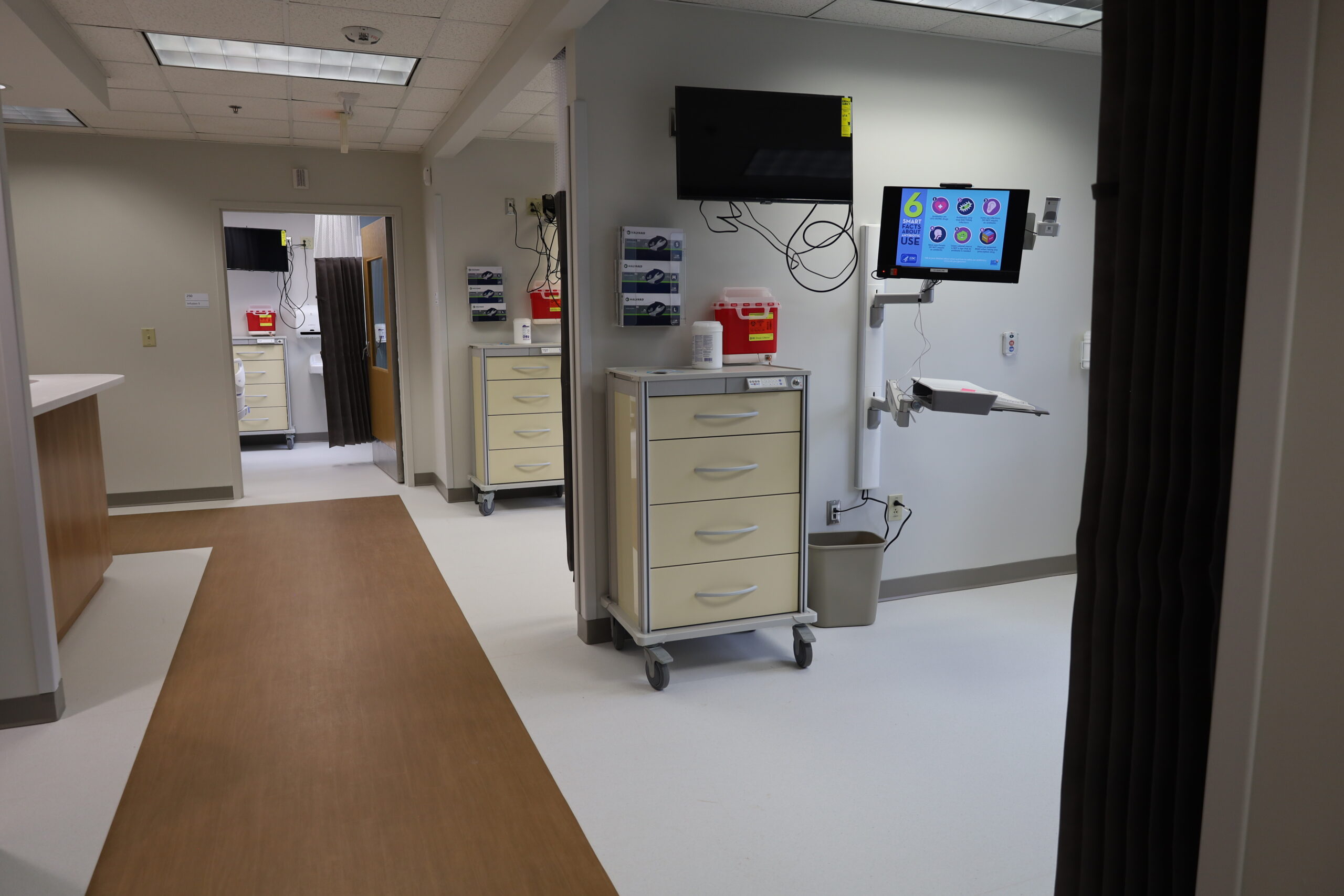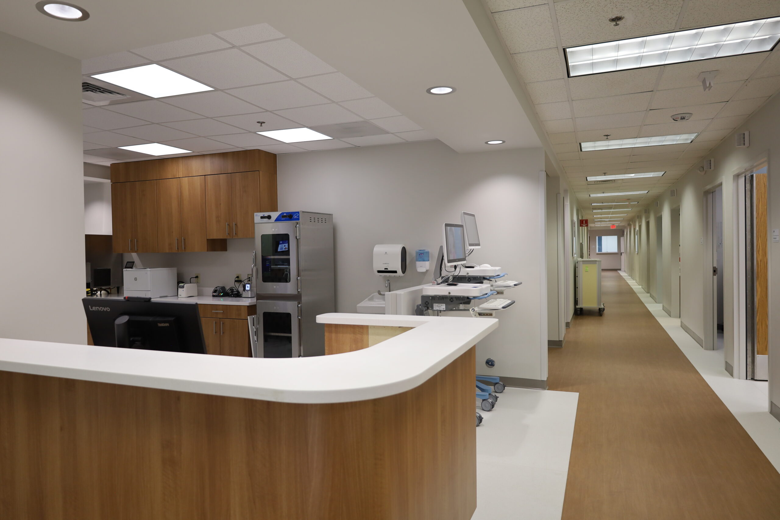 Narrative: This renovation included 16 exam rooms, a new nurse’s station, and work rooms. The infusion side of the renovation had 22updated infusion rooms, new nurse station, med room. New reception check-in and check-out stations were also installed.